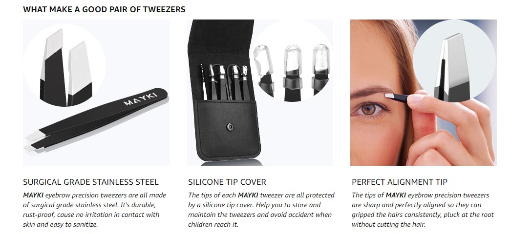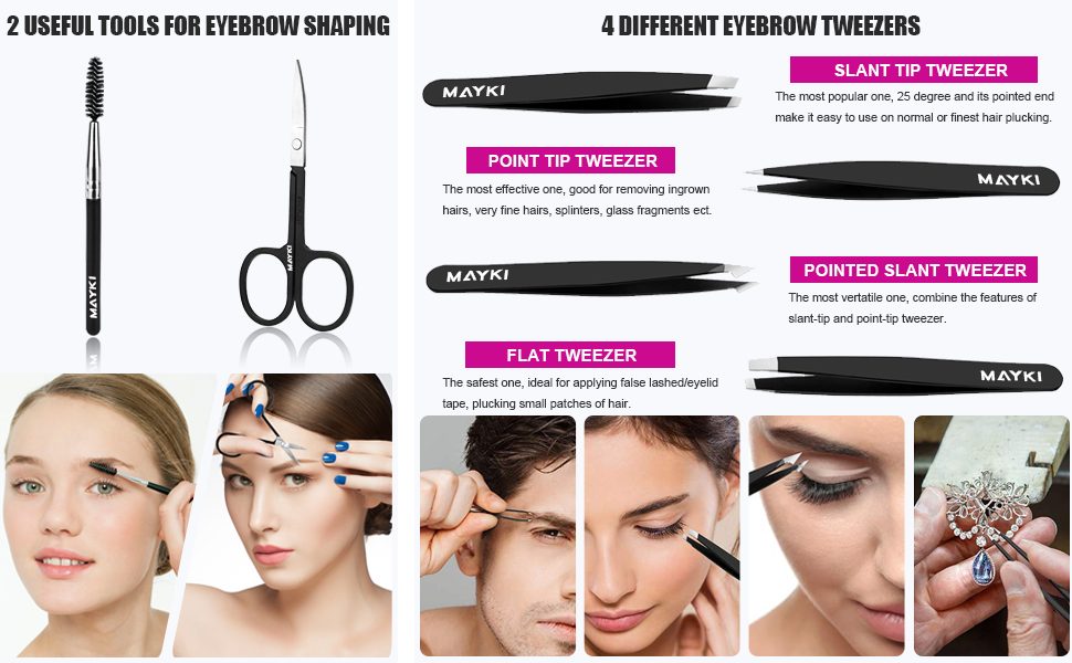 - MAYKI eyebrow precision tweezers are all made of surgical grade stainless steel.