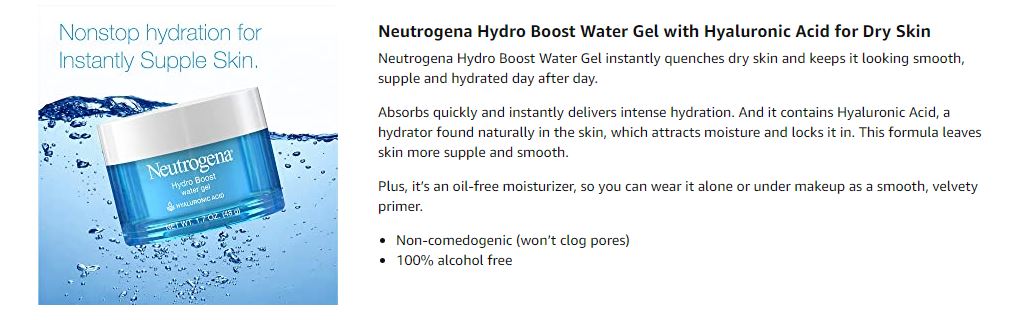 - 1.7-fluid ounce jar of Neutrogena Hydro Boost hydrating water-gel face moisturizer with hyaluronic acid to hydrate dry skin